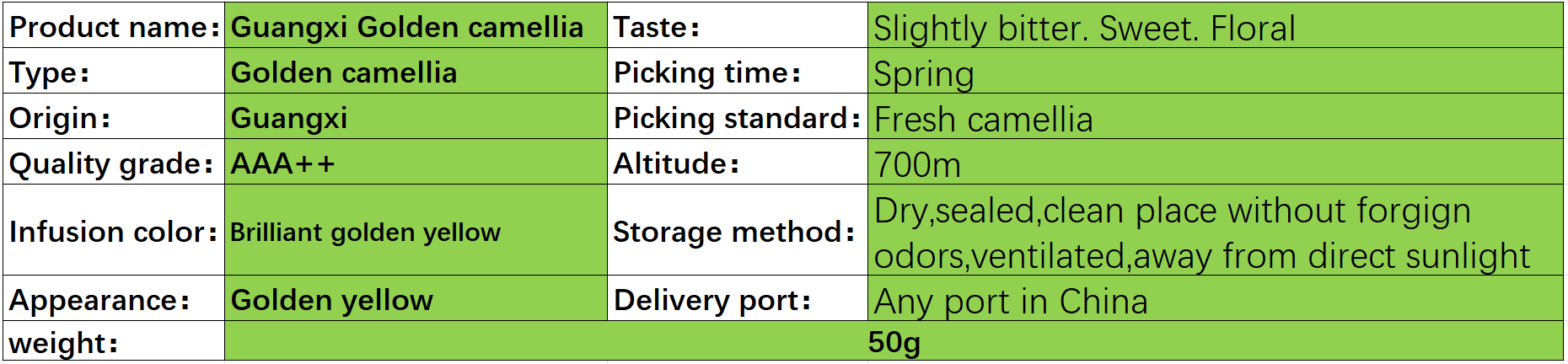 The natural golden tea is grown without fertilizer and pesticides, using the freshest flowers. It’s freeze-dried.