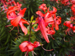 The Longshan Trumpet Lily stands tall and graceful. Its leaves are long and lush, stretching out like resolute spears, their emerald green color so vivid as if they were masterpieces meticulously crafted by nature, adding a vibrant vitality to the plant. And its flowers are simply captivating. The petals are a fiery red, curling freely, with purple-black spots dotting them like twinkling stars in the deep night sky, mysterious and alluring. The tips of the petals slightly curl upwards, resembling dancing flames or the brilliant sunset clouds falling to the earth. Each petal exudes a wild and passionate beauty that leaves one spellbound.